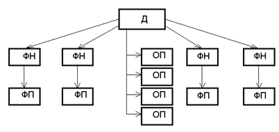 Д- директор; ФН - функциональный начальники; ФП – функциональные подразделения; ОП - подразделения основного производства