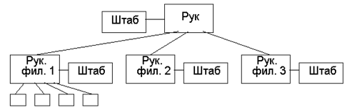 Формирование дивизиональной (филиальной) структуры за рубежом связано с процессами "разукрупнения" гигантских корпораций в 60-е годы. Стремясь повысить гибкость и приспособляемость к изменениям во внешней среде, крупнейшие компании начали выделять из своего состава производственные отделения с предоставлением им определенной самостоятельности в осуществлении оперативного управления. При этом все важнейшие общекорпоративные функции управления оставались в ведении центрального аппарата управления, который разрабатывал стратегию развития организации в целом, решал проблемы инвестирования, научных исследований и разработок.