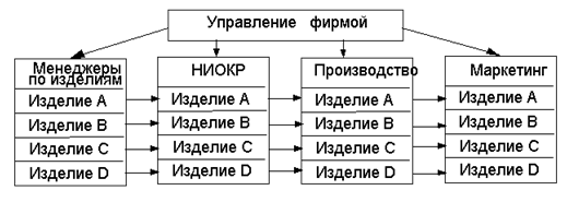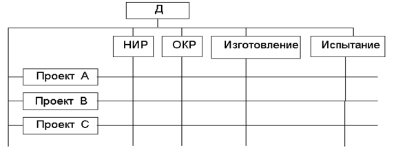 Матричная структура характерна тем, что исполнитель может иметь двух и более руководителей (один - линейный, другой - руководитель программы или направления). Такая схема давно применялась в управлении НИОКР, а сейчас широко применяется в фирмах, ведущих работу по многим направлениям.