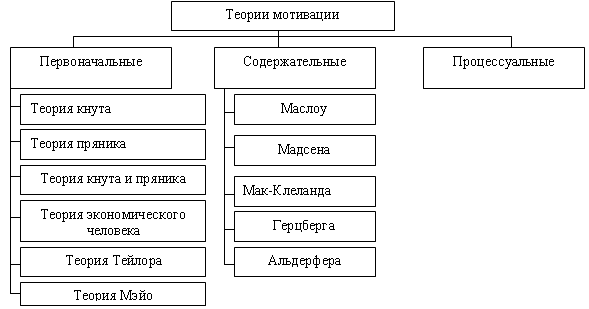 Существуют различные теории мотивации, базирующиеся на удовлетворении потребностей и побуждении людей к действиям. Принято выделять первоначальные, содержательные и процессуальные теории мотивации: