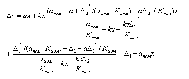 у=у1-у2=(а+Δ2)х+Δ1-а′(-Δ1/а+Δ2/а·х)=х(а+Δ2(1-а′/а))+Δ1(1-а′/а).