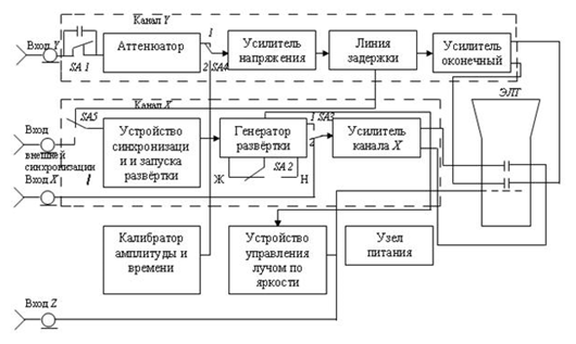 Независимо от типа осциллографа в его структуре выделяют следующие основные узлы: