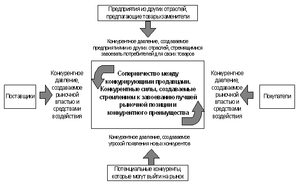 Совместное влияние пяти конкурентных сил определяет характер конкуренции в отрасли и ее привлекательность для предприятия.