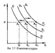Изменение в спросе выражается в сдвиге кривой спроса влево (при сокращении спроса) или вправо (при увеличении спроса).