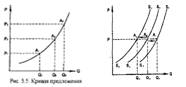 Точки A1, А2, A3 и т.д. показывают величину предложения при соответствующей цене. От изменения величины предложения следует отличать изменения в предложении, которые происходят под воздействием неценовых факторов предложения.