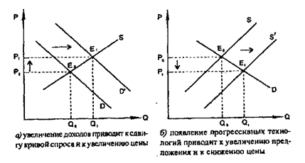 • 1) Рост спроса вызовет рост как равновесной цены, так и равновесного количества товаров.